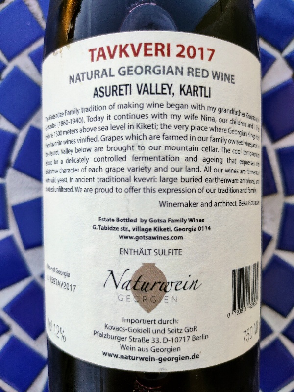 Erboristeria georgiana ambulante, gustose caramelle alla rosa e alla violetta, fragoline di bosco, ribes nero, lamponi e arancia rossa, gelso e spezie policrome. Freschezza minerale e tannino “massaggiante”, buona struttura e leggerezza che solleva anima, corpo e mente. Amarognola succosità, stimolante rotondità e allegria. Un altro giro?