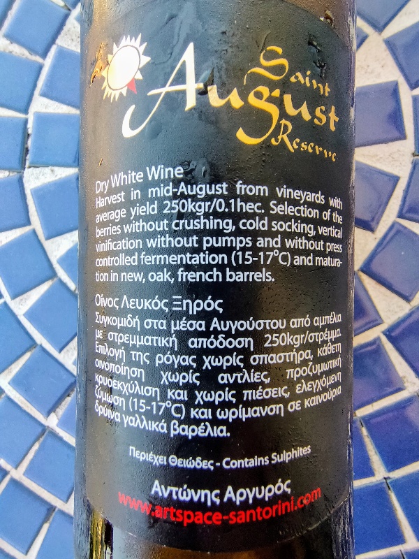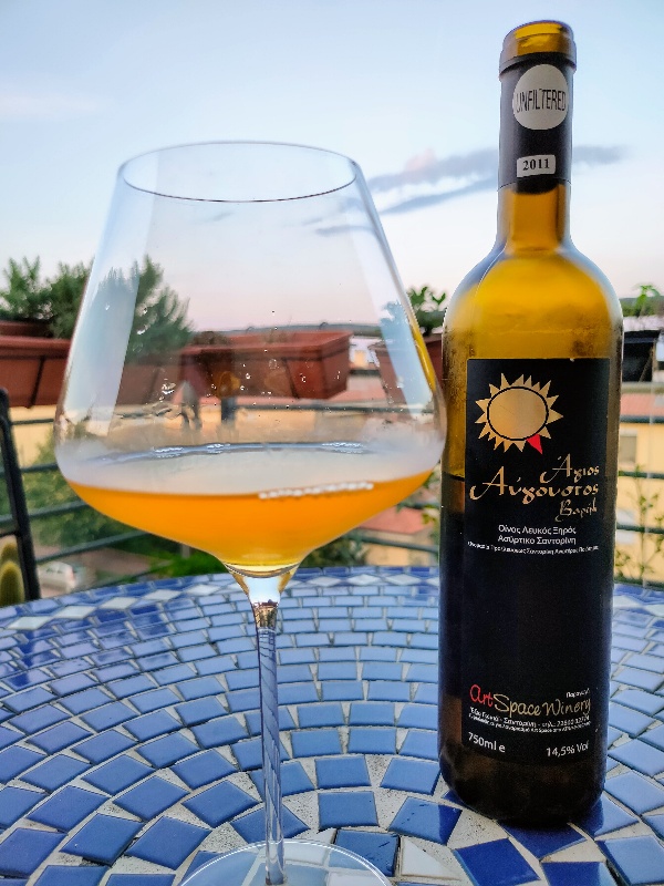 Vive di luce propria e fa brillare Santorini intera. Nove anni dopo, l’unico -vago- ricordo del legno usato è un sentore di burro centrifugato che va ad “arrotondare” un naso molto complesso, intenso, ricco, maturo, pungente, minerale. Idrocarburi e pietra vulcanica, pesca e fico d’India, cedro e arancia amara, caprifoglio e genzianella, origano, timo e maggiorana. Lo iodio irrompe e “spettina” la maturità acquisita, sala, punge e rinfresca. Struttura e forza fanno aumentare il peso di questa perla e l’eleganza, acquisita nel tempo, la impreziosisce ulteriormente rendendola unica.