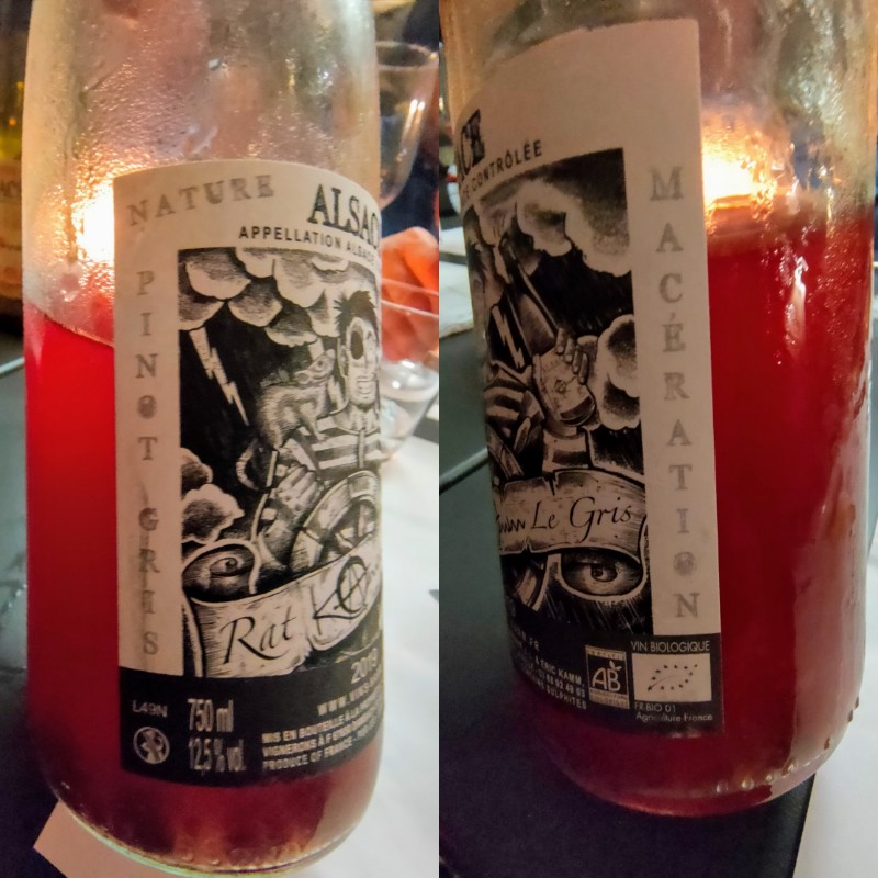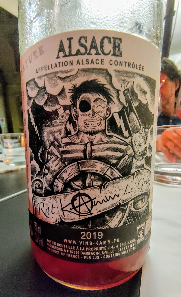 In prima fila il fascino del pirata alsaziano e sullo sfondo l’Overture K.384 da “Il Ratto del Serraglio”. Lunga immersione del Pinot Gris che solca il mare roccioso di Dambach-la-Ville superando limiti e convenzioni. L’acciaio luccica, fende; sanguina la terra, sgorga vivo e potente il nettare, minerale e fresco, fitto di radici e fiori selvatici, agrumi e frutti di bosco, tè nero e vetiver. Tira dritto, deciso, graffiante fino alla fine. Carattere e originalità.