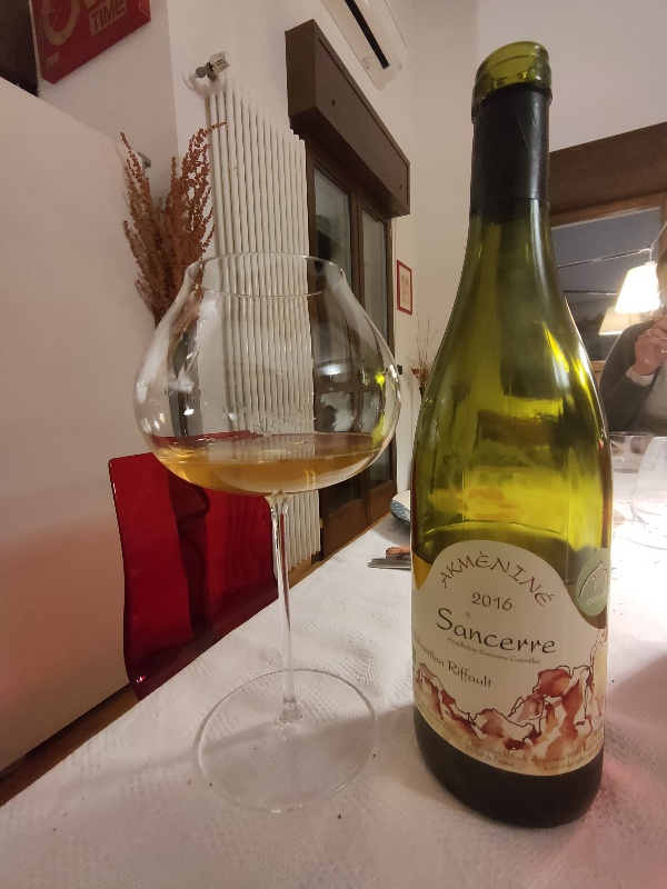 Akmèniné, “vino di pietra” dove macerazione e surmaturazione delle uve trovano un equilibrio magnifico sotto l’attenta supervisione di Sébastien Riffault. Sancerre atipico di grande intensità e di notevole complessità gusto-olfattiva, minerale, secco, materico. Frutta matura, fiori gialli “stanchi”, buccia di agrumi, miele, zenzero e note di torrefazione. Sorprendente la freschezza e la sapidità in un sorso morbido, concentrato, persistente e immensamente coinvolgente. Spettacolo puro.