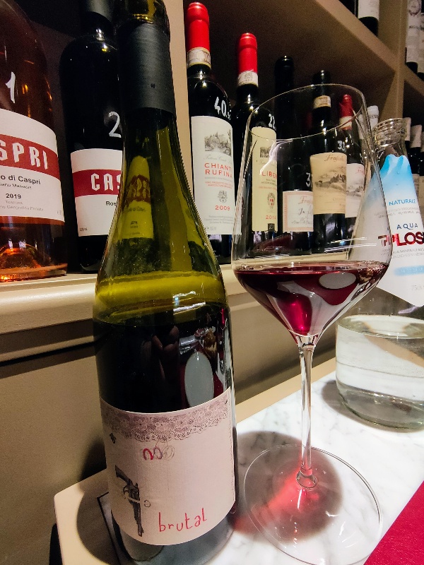 Axel Prufer sfodera una delle sue armi migliori, il Brutal. Composto da Carignan e Syrah, si districa abilmente tra mille insidie, fra residui zuccherini appostati e pronti a colpire e volatili alte che lo prendono di mira. Sguscia via veloce e leggero e “scarica” la sua raffica di colpi senza pietà e con precisione millimetrica: frutti rossi e neri maturi, erbe selvatiche e bordate minerali. Tutto finisce in pochi attimi e torna il sereno dopo una tempesta di emozioni forti che finiscono dentro un sogno.