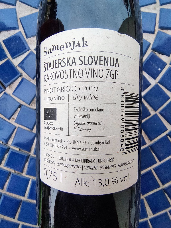 La maestria e la tradizione degli Sloveni nelle lunghe macerazioni si conferma ancora una volta nel Pinot Grigio di Srečko Šumenjak. Colore e aromi intensi, sostanza ma non pesantezza, sorso avvolgente, succoso, di grande stoffa e, soprattutto, lontano da una “volgarizzazione” -ultimamente diffusa- della “pesante” macerazione a tutti i costi che tende a omologare l’orange wine agli occhi dei meno esperti. Albicocche mature e agrumi, spezie dolci ed erbe aromatiche, legno buono e sottile affumicatura introducono un nettare fresco e rotondo, dal tannino gentile e dall’ottima bevibilità. Vino elegante, persistente e di grande piacevolezza.
