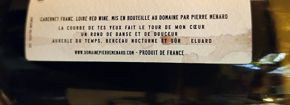Affascinante, espressivo, magnetico. Al naso racconta subito la sua anima; frutto nero fresco, ribes e mora, attraversati da note di peperone rosso e da quel timbro ferroso, sanguigno, pulsante, che rende il Cabernet Franc della Loira così inconfondibile e vivo. In bocca è puro piacere. Il vino è ampio, fluido, avvolgente, con una materia fine e setosa che scorre senza sforzo. I tannini sono vellutati, quasi tattili, mentre la freschezza tiene il sorso teso e irresistibile. Il frutto resta croccante, profondo, accompagnato da sfumature di grafite, tè e pepe nero. Il finale è lungo, vibrante, leggermente salino, e lascia una sensazione di frutto intatto e di energia minerale che invita immediatamente a un altro sorso. E’ un vino potente ma non pesante, istintivo e autentico. Sensuale e libero.