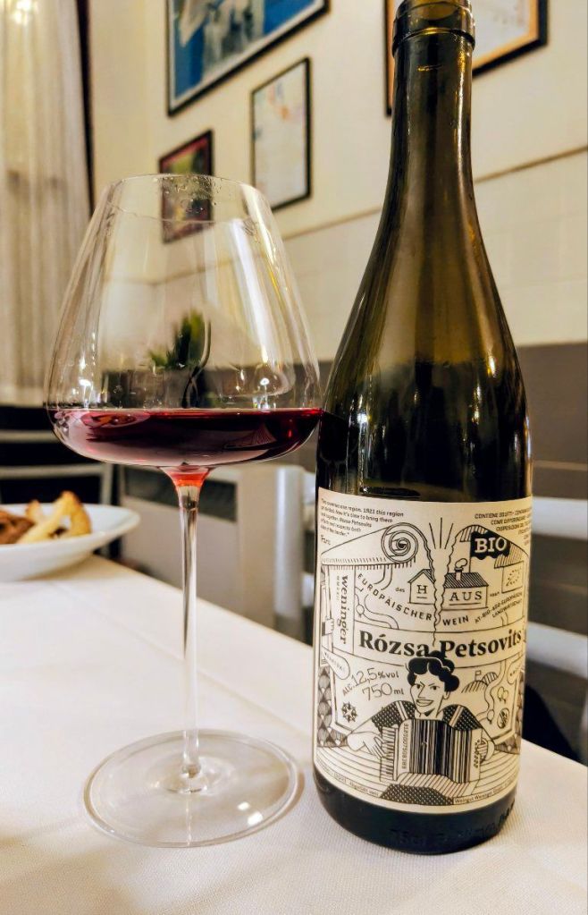 Non sembra un rosé, sembra qualcosa che ha deciso da solo cosa essere. Lo guardo in controluce prima di versare; il colore è un rosso ciliegia con riflessi arancioni ai bordi, attraversato da una leggera torbidezza -come una nebbia sottile- che sottolinea la sua natura non filtrata. È vivo, si muove nel vetro con una leggerezza che promette sollievo. Al naso, si manifesta un bosco selvatico con i suoi frutti aciduli, con le sue erbe aromatiche, con le sue radici profonde e le sue spezie giocose. Al palato sento l’acidità, alta, viva, inaspettata, i tannini educati, il frutto succoso, selvaggio, per niente addomesticato, il sale e un finale delicatamente “amarino” che prolunga il piacere. Un racconto, una risata e l’ultima goccia che scende lenta da un calice -ormai- vuoto. Vino vero.
